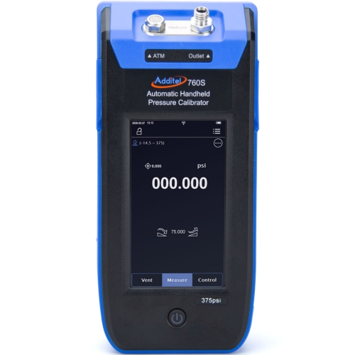 The Additel 760S is a powerful, automatic, handheld pressure calibrator designed for precision and portability in the field. Weighing less than 1.8 kg, this integrated device replaces traditional hand pumps with a built-in electric pump, internal controller, and a high-accuracy pressure sensor. Optimized for instrumentation technicians, the ADT760S features a seamless user interface via a new capacitive touchscreen, allowing users to generate and control pressure simply by entering the desired setpoint. With three separate channels—including internal pressure and two external pressure channels—it serves as a comprehensive tool for pressure calibration and maintenance of critical process instrumentation.